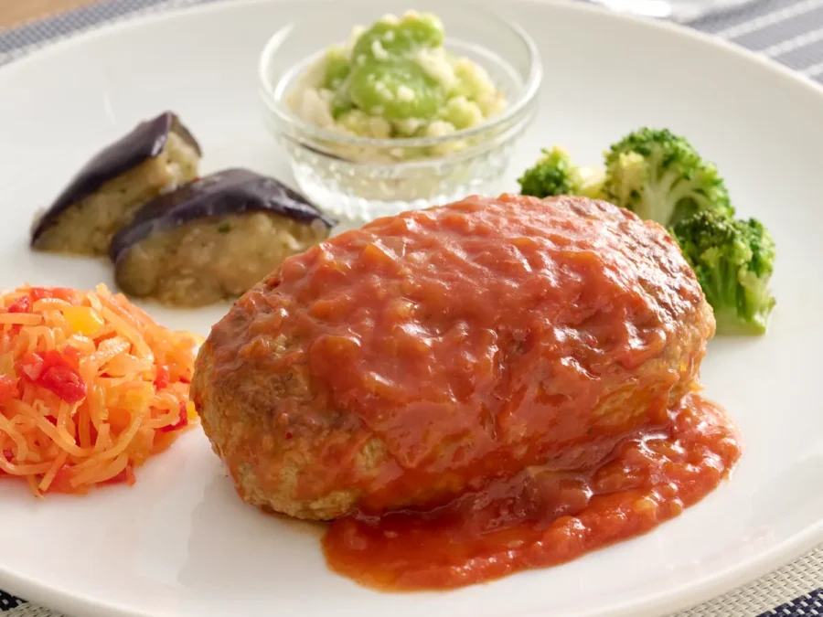 最初に選んだのは、ナッシュの人気メニュー「チリハンバーグステーキ」。