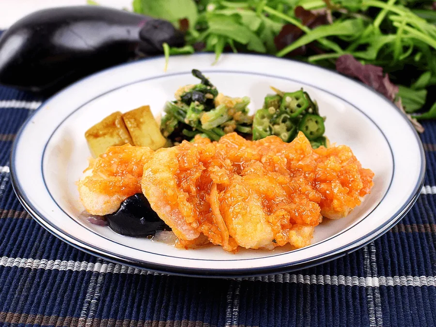 2日目のこの日は「鶏の甘酢あん」。甘酸っぱくてご飯が進みます。